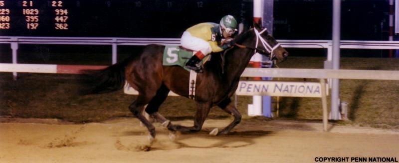 ('02 F. FRIENDLY LOVER - B J RUCKUS) SHOWN WINNING CAREER DEBUT AT PENN NATIONAL ON 3/30/05. CONGRATULATIONS TO OWNER- GREEN EYED STABLE. TRAINED BY TODD BEATTIE.