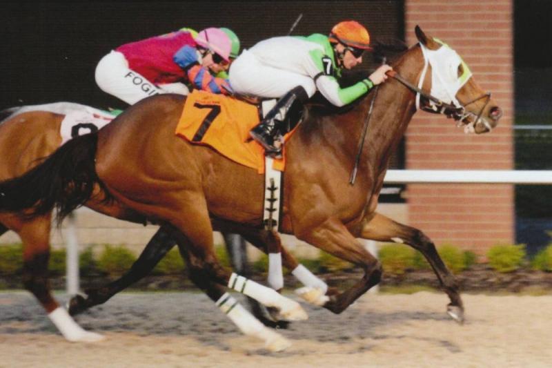 ('03 C. RICHTER SCALE-B J RUCKUS), SHOWN WINNING A 5 1/2 MSW AT PHILADELPHIA PARK ON 7/1/07. CONGRATULATIONS TO OWNER, GREEN EYED STABLE. TRAINED BY TODD BEATTIE.